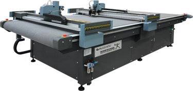 在瑞洲科技的展位現(xiàn)場(chǎng),RZCRT5-1813智能數(shù)控切割機(jī),其自首發(fā)之日起,全球總銷(xiāo)量已達(dá)數(shù)千臺(tái),經(jīng)市場(chǎng)多年驗(yàn)證,性能穩(wěn)定、表現(xiàn)卓越,深受?chē)?guó)內(nèi)外用戶(hù)青睞; 集智能、高效于一體的智能數(shù)控切割機(jī)的,可實(shí)現(xiàn)畫(huà)線、繪圖文字標(biāo)注、壓痕、半刀切割、全刀切割一次性完成,切割速度高達(dá)1500m/s,振動(dòng)刀轉(zhuǎn)速高達(dá)18000轉(zhuǎn)。同時(shí)標(biāo)配進(jìn)口直線導(dǎo)軌,傳動(dòng)系統(tǒng)采用進(jìn)口直線導(dǎo)軌、齒條、同步帶,切割精度完全達(dá)到往返原點(diǎn)零誤差。
